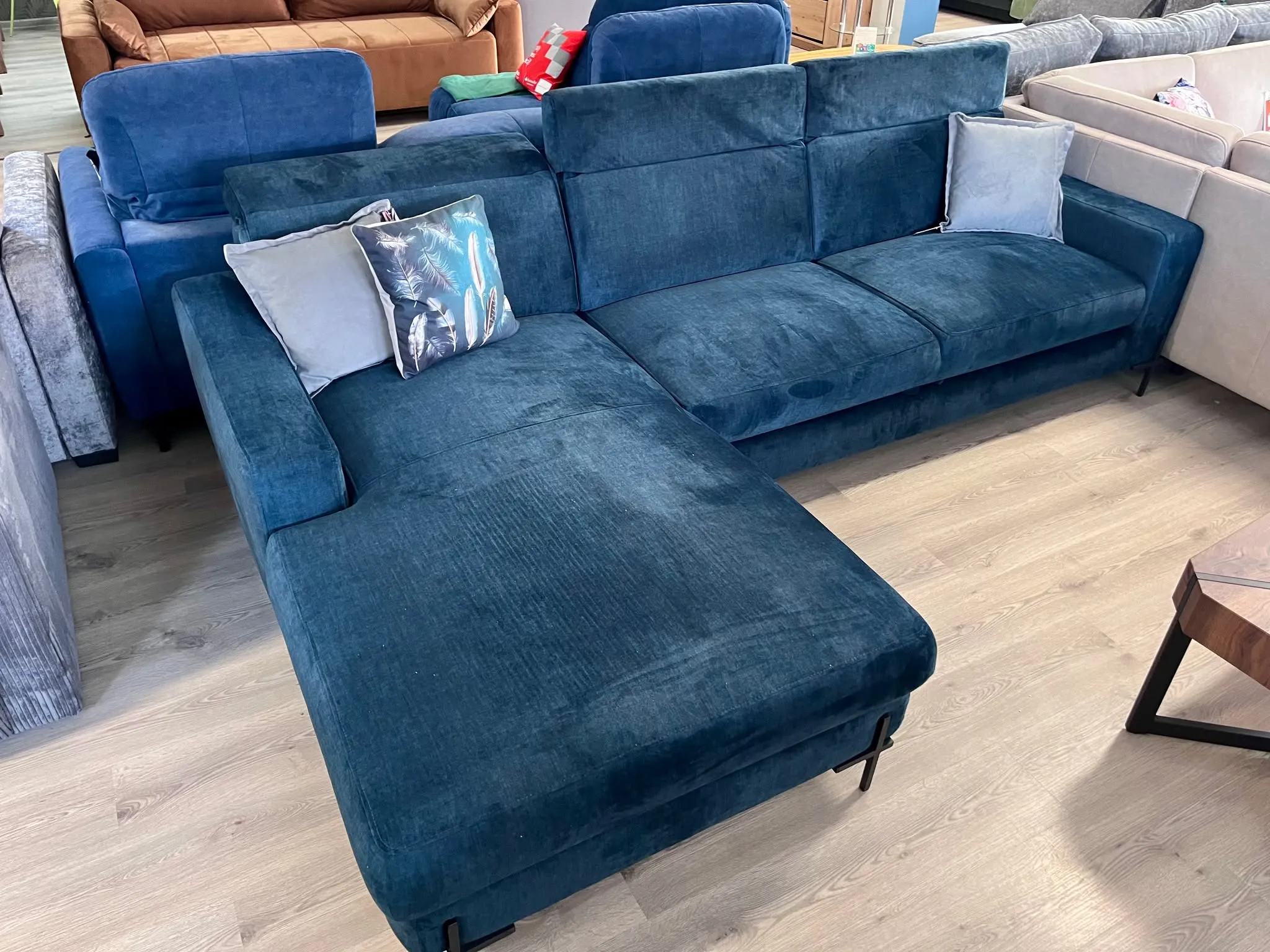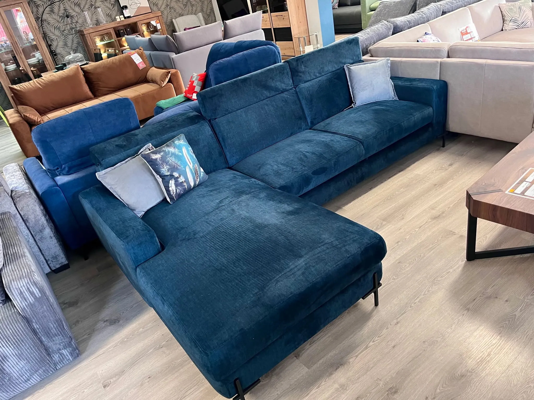 Lagos to obszerny narożnik, który wyróżnia się swoją dużą otomaną i stylowymi nóżkami. Jej bryłę uzupełnia obszerny pojemnik na pościel oraz ruchome zagłówki. Jest to mebel o wyjątkowym kształcie, który zaskakuje swoją wygodą i funkcjonalnością.