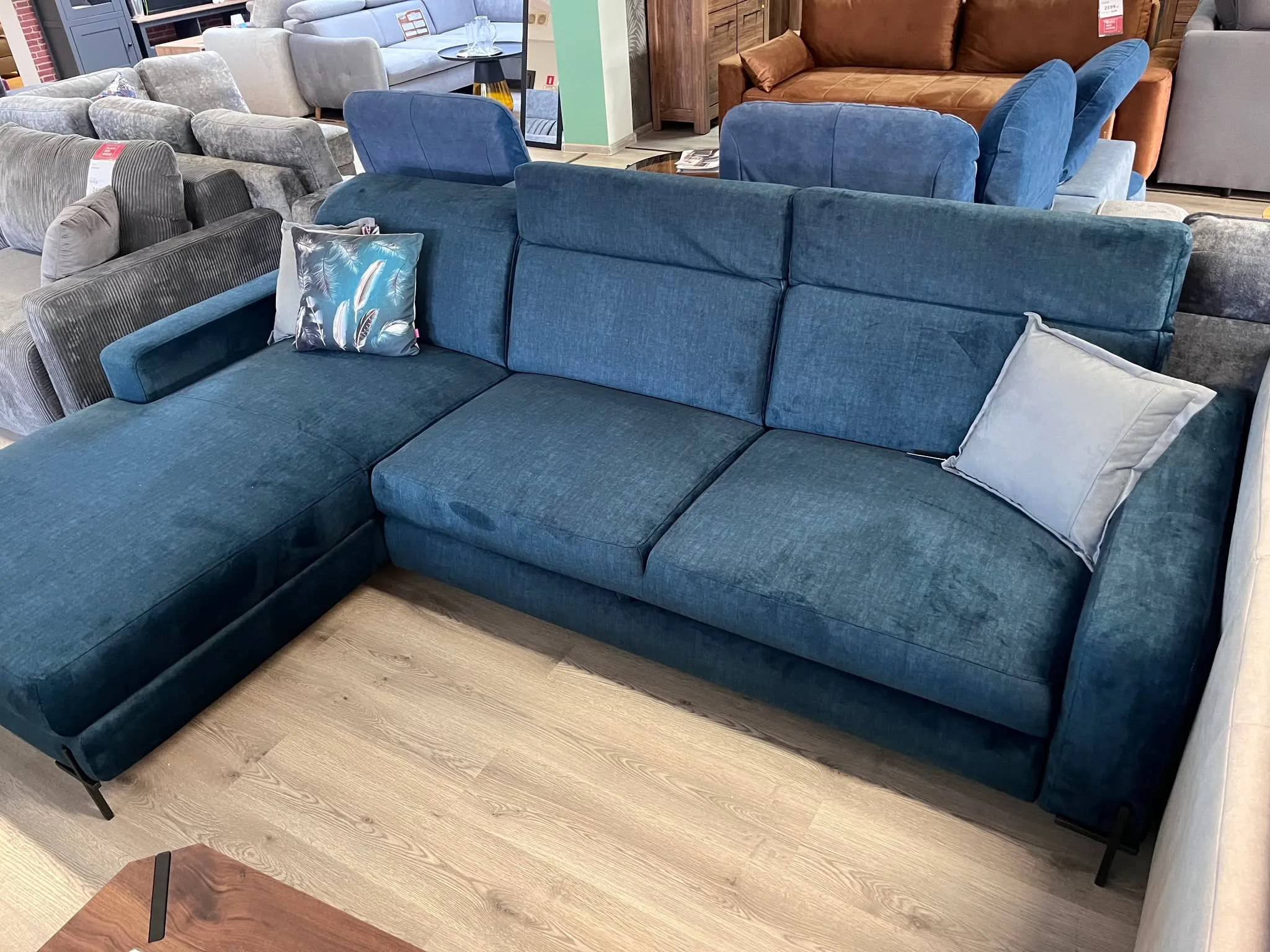 Narożnik rozkładany z pojemnikiem na pościel.